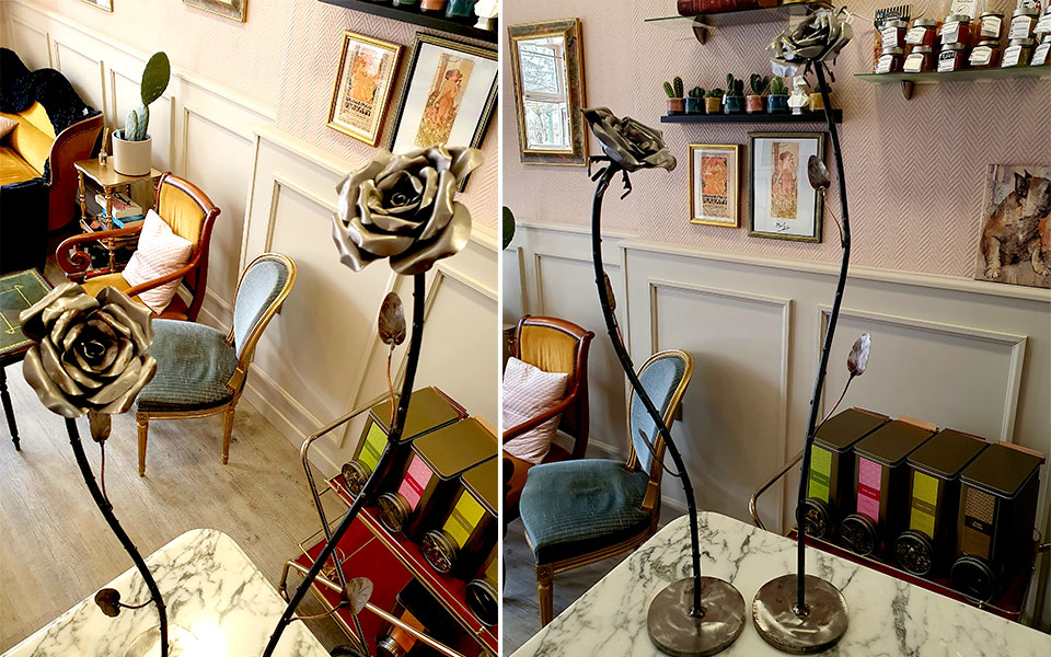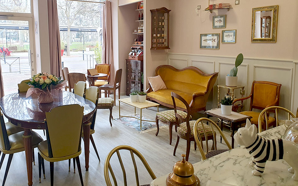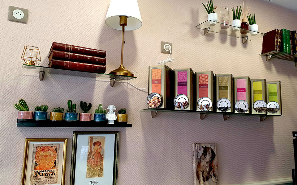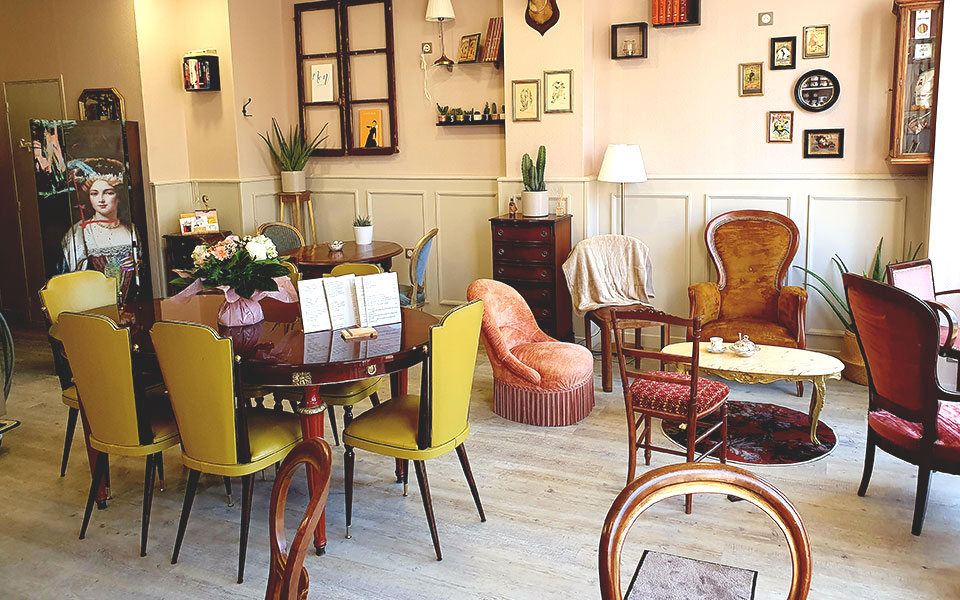 J'ai rassemblé en un seul lieu tout ce que j'aime : la déco et le mobilier chiné ici et là, la vaisselle ancienne, l'odeur des vieux livres que l'on prend plaisir à sentir et écorner, le café italien, le thé, les gourmandises sucrées salées, et aussi le bon vin, les bières artisanales...